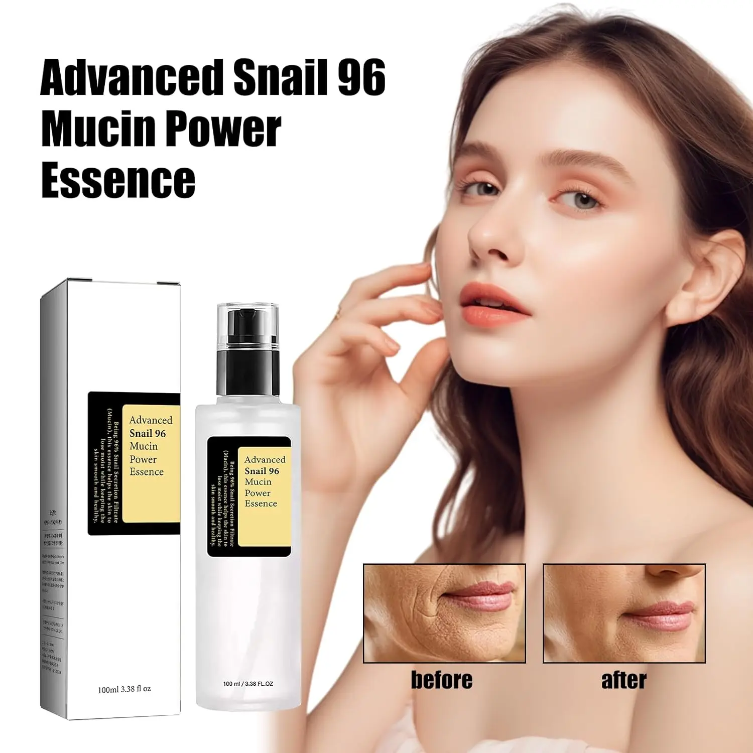 【Anti-Aging】If you want to fight the signs of aging, you need to keep your face moisturized Hyaluronic is a natural substance in your body. Not only does it bring in moist but sure, but it also helps cells keep the moisture the skin produces. Snail Mucin 96% essence solves this problem well