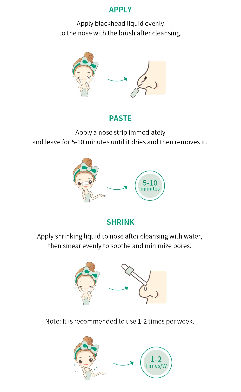 First, the mask works like a magnet, pulling out stubborn blackheads and dirt. Then, the Pore Shrinking Essence swoops in to minimize the look of pores and control oil.